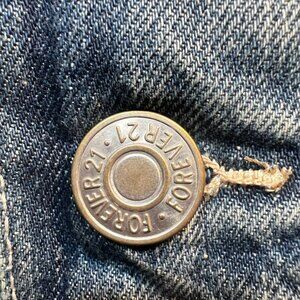 Forever 21's take on the classic jean jacket. It is distressed including holes in the collar and discoloration though out that makes it look old and well worn even though it is brand new and has never been worn.