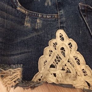Distressed high waisted Free People shorts, cute lace detail on sides. Size 24 All offers considered!