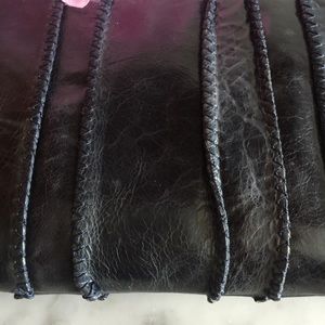 Small Distressed look Genuine Leather Elliott Lucca Shoulder bag. This adorable bag is blue not black! I love the zig zag stitching on this bag! So pretty💗 The leather has an all around distressed/worn look to it. Some faded/wrinkled areas. This bag is brand new without tags. The original paper is still inside the bag. The silver hardware does have some scratches from sitting in my closet. I have way to many bags! Secure zipper closure. Please review all pictures & feel free to ask questions💕
