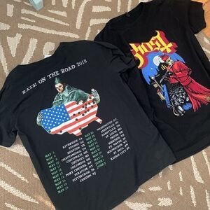 As Is Distressed Used Condition-Tour Tee Has A Large Hole At Neck Seam And Both Tees Have Fading, Discoloration And Pilling