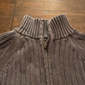 Distressed Gray Ribbed Aigle Zip-Up Sweater medium