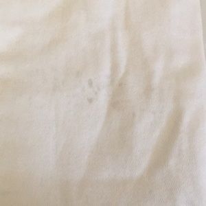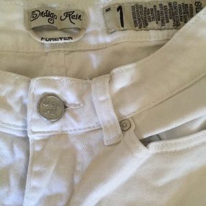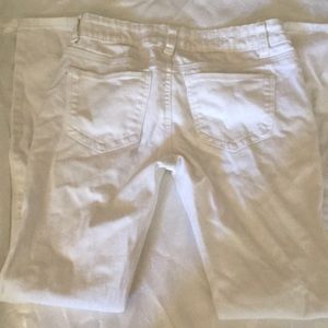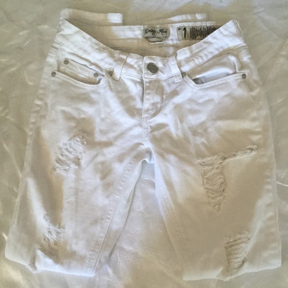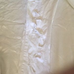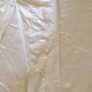 Five pocket distressed white jeans some discoloration back lower pant legs see photos