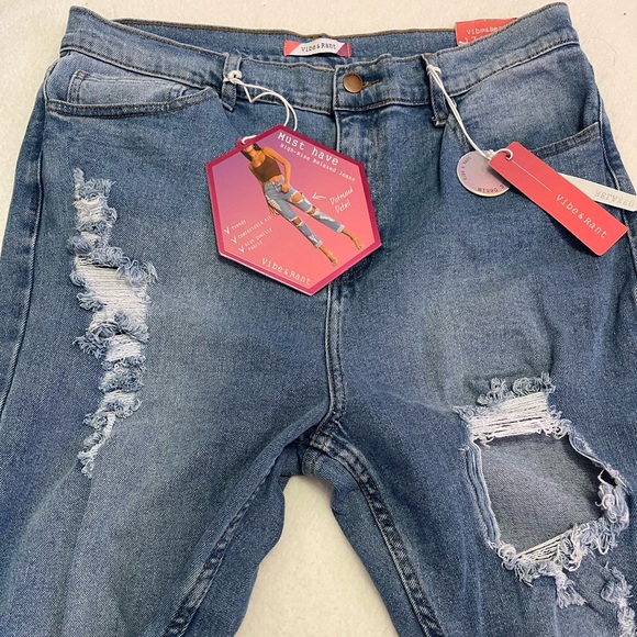 Distressed jeans vibes &rant poco estiramiento con roturas cintura alta