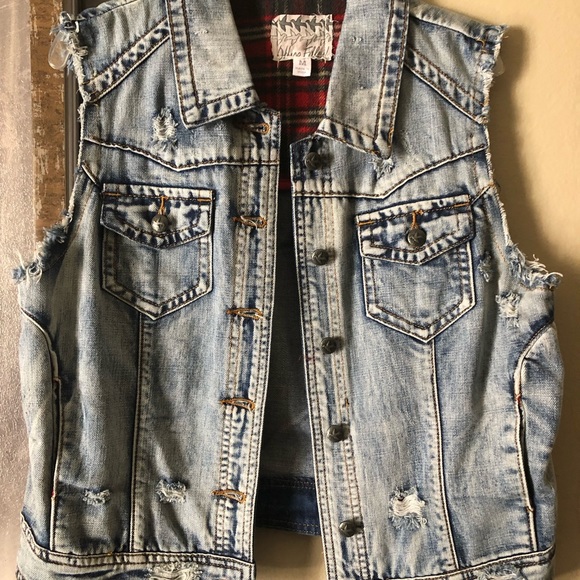 New. Never worn. Distressed sleeveless jean jacket.