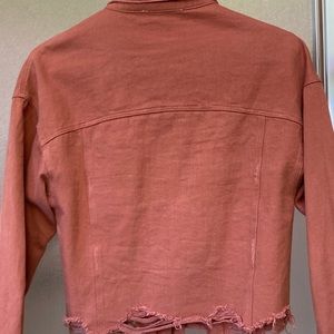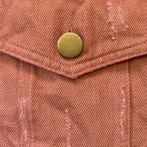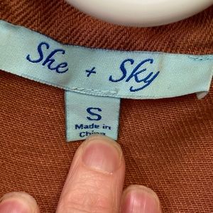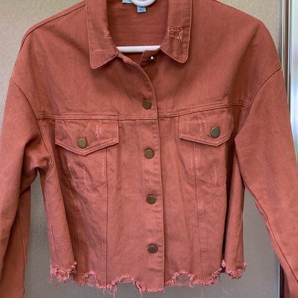 Cropped and rust in color. Size small but has a baggy, comfortable fit. Comes from a small town boutique. Hand washed only