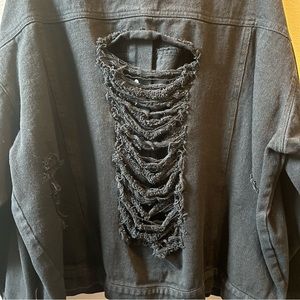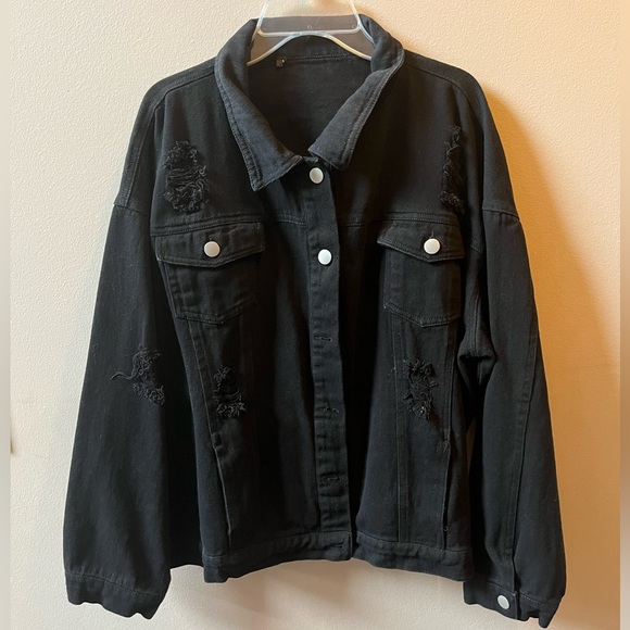 Black distressed jean jacket. Size L. Oversized. Worn once.