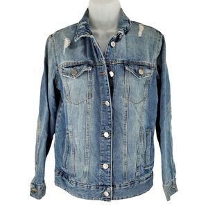 Distressed Jean Jacket XXS Womens Abound Light Blue Oversized Lagenlook Grunge