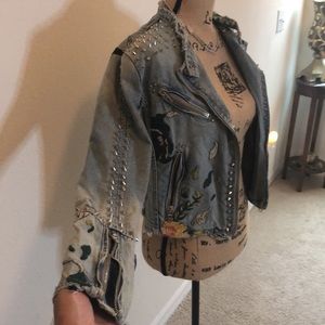 ✳️LIKE NEW CONDITION✳️ ONLY WORN 3 TIMES❇️ can be ironed on LOW ✳️ CLEAN & READY FOR A NEW HOME 🏡 & SOME POSH LOVE 💕 Snap Collar / Has 3 zippered pockets, 2 on each side and one up on the chest area, each are FUNCTIONAL / Has Zippered Arms / has POINTED CONE TYPE STUDS up the arm and shoulders and breast flaps, even some down near the waist and on the backside /zippers everywhere/ Has a bit of weight / This jacket ROCKS 😎 goes FANTASTIC with jeans 👖💕