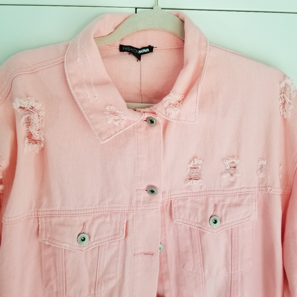 Oversized Pink distressed Jean jacket