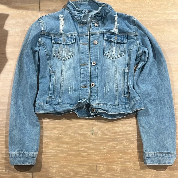 Blue distressed Jean jacket like new condition