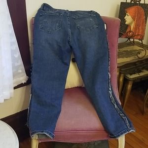 These are stretchy, distressed Jean's with side panels of camo on both sides of Jean's. Size 11. Barely worn. Smoke free home.