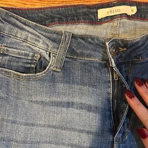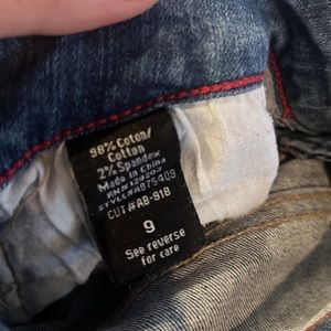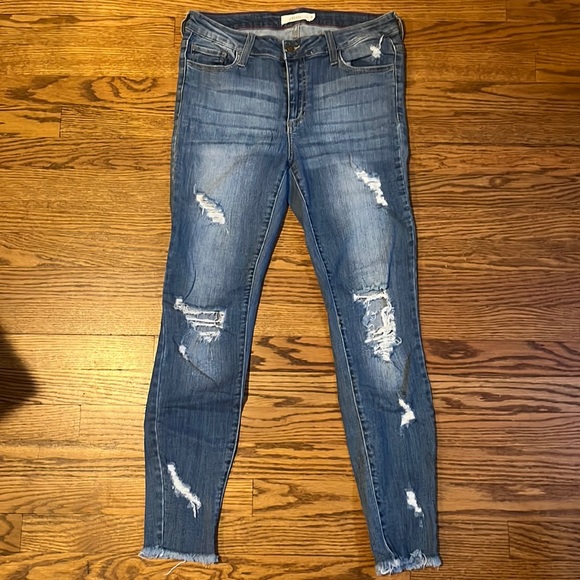Distressed Blue Jeans. Skinny jeans. Comfortable and stretchy. 98% Cotton. 2% Spandex.
