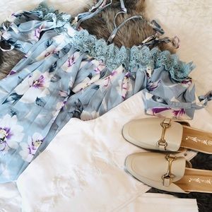 @boggiesofia10 I have the floral blue top in size small and medium it’s a loose fit flowy too which is nice and elastic top