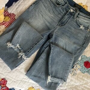 Distressed Judy blue denim skinny fit. Has distressed leg hem. Excellent condition. Size 5/27.