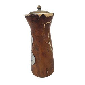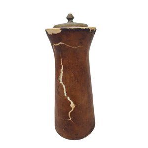 Distressed Leather Salt and Pepper Set Marcello Fantoni Inspired Italy 1960's
