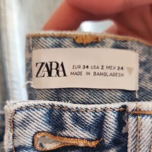 Stylish distressed zara jeans in a classic light blue color. Perfect for a casual, trendy look. Will negotiate on price. These have been worn/used but not damaged at all. Size 2