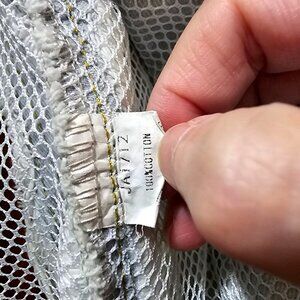 Some fraying and wear visible as part of the design. Top to bottom = 22 inches, Shoulder to sleeve end = 23 inches.