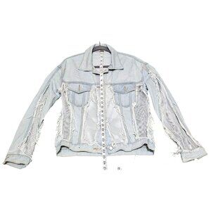 This jacket offers a blend of casual style and unique detailing. Featuring distressed denim with mesh inserts, it provides a breathable and contemporary look.