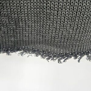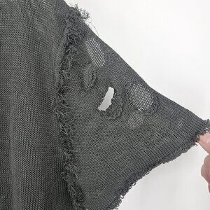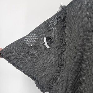 Condition: Good pre-owned condition. Features intentional distressing with frayed hems and multiple holes on sleeves giving a grunge/punk-inspired look. Please see photos for close-up details of sleeve holes, fraying at collar, hem, and overall mesh texture. Some general signs of wear consistent with design and use.