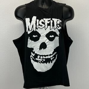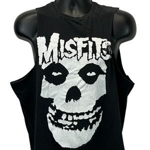 Distressed Misfits Sleeveless T Shirt Mens L Large The Crimson Ghost Skull Logo Punk Rock Band Black Graphic Tee