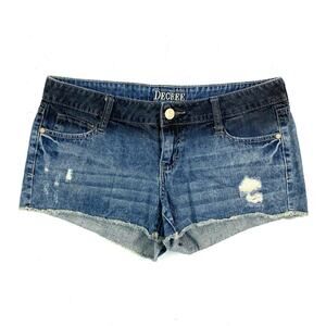Decree Ombre blue jean shorts, dark at the top, light distressing, short cutoff hemline, good preowned condition, can be dressed up or down, great for summer