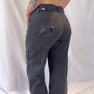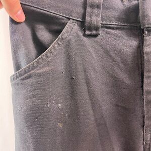 Distressed workers pants. Fair condition. Paint splatters and rips for the distressed look. I would say they are a short leg.
