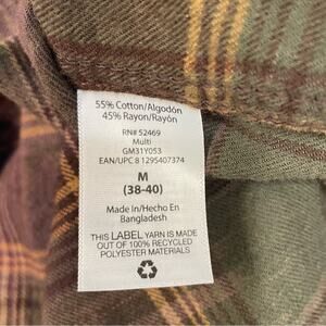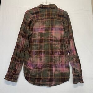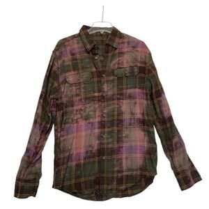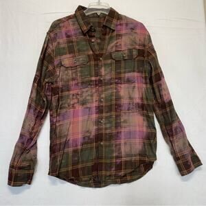 Distressed Plaid Flannel bleach dyed brown purple pink button down size Medium