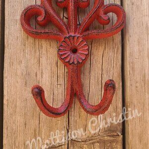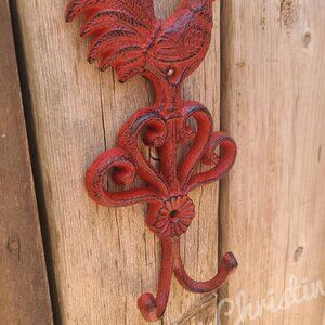 Distressed Red Rooster Cast Iron Hook