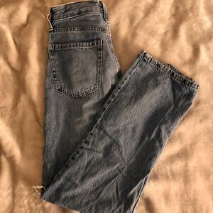 Stylish distressed blue jeans perfect for a casual look. Comfortable and trendy, these jeans are a must-have for your wardrobe.