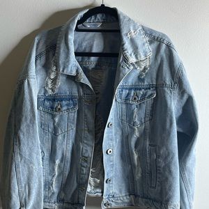 Distressed Ripped Light-wash Jean Jacket