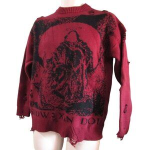 Distressed Salvation Priest Graphic Knit Tattered Thrashed Gothic Sweater EUC XL