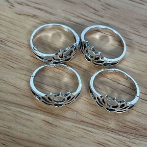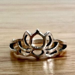 Distressed Silver Toned Open Lotus Flower Outline Ring, Women’s Size: 6.5