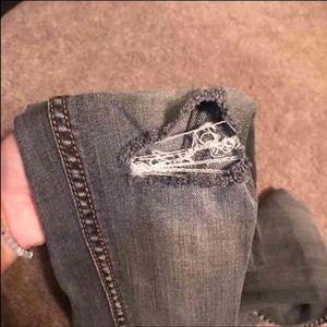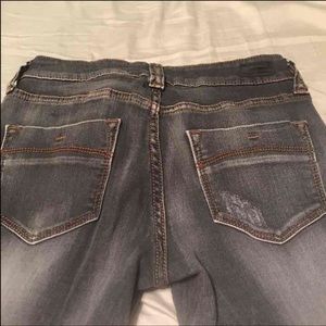 Never worn, but no tags. The Jeans are distressed at the knees. Great fit and shape!
