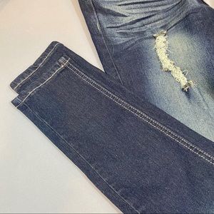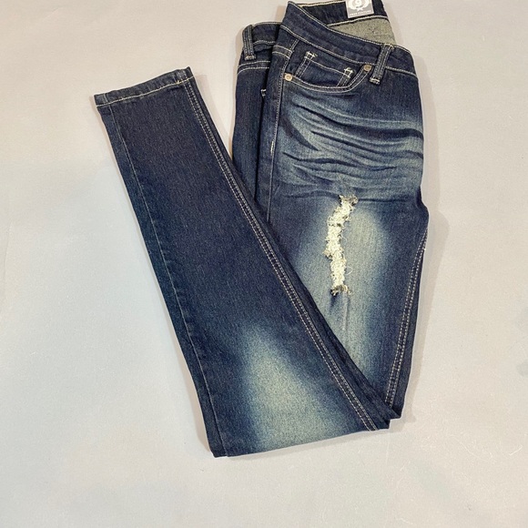 Lightly distress skinny jeans, very comfy but runs small in measurements. Check the measurements below before purchasing.