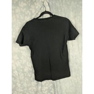 Unique T Shirt design - skull and roses / floral screen print design looks as if drawn or stitched . Plese note small bleach splatter on one sleeve and a pin hole in picture.