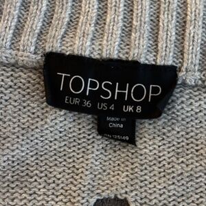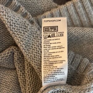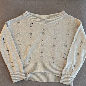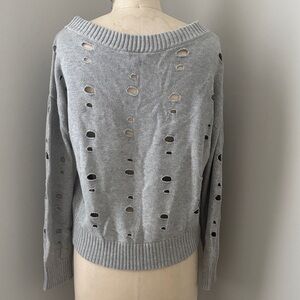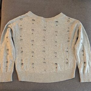 Trendy gray sweater with a distressed design. Holes are knitted throughout the sweater. Ideal for season’s transition. Oversized small.