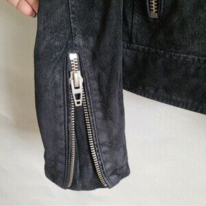 Distressed Suede Leather Black Chunky Zipper Moto Biker Jacket Sz L Blank NYC
