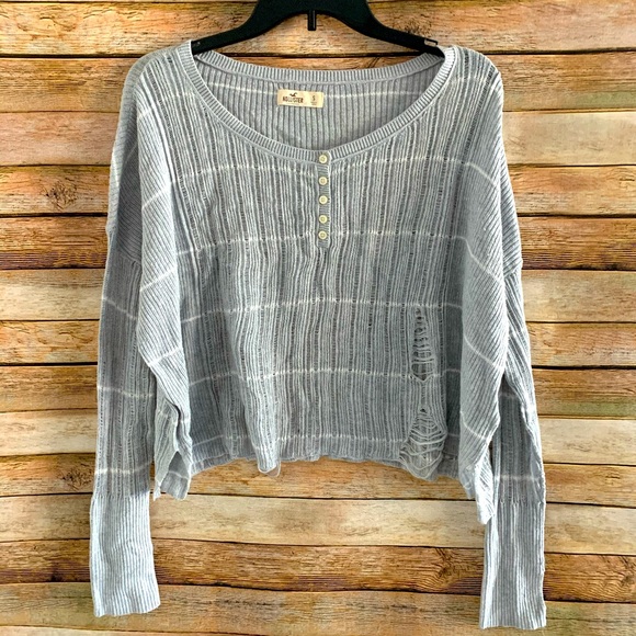 Hollister distressed gray and white sweater, never been worn