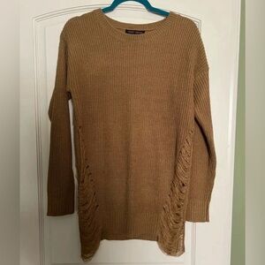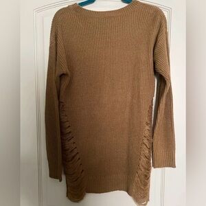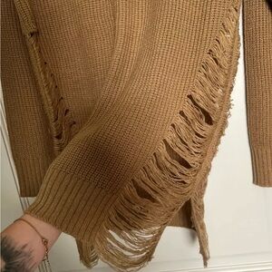 Cozy tan sweater featuring trendy distressed details. Perfect for casual wear. Wore once or twice. Excellent condition.
