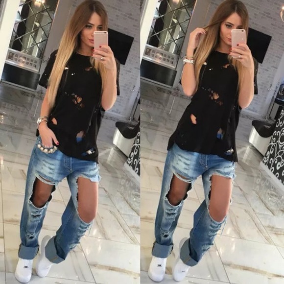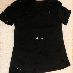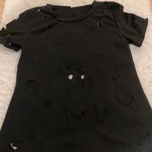 Black cotton distressed t-shirt.