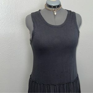 Distressed Tank Top Maxi Dress Women’s Size Medium Tiered Dress Dark Grey