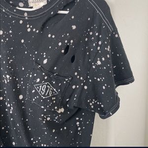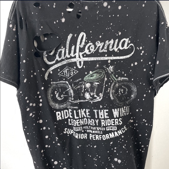 Size medium, loose fitting. Cute with a tie on the waist or as is.