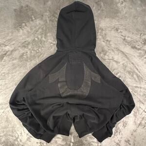 Distressed True Religion Black Horshoe Graphic Full-zip Hoodie Size Large