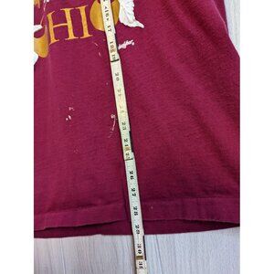 Distressed VTG 90s Our God Reigns God Jesus T Shirt USA Paint Splattered Maroon.