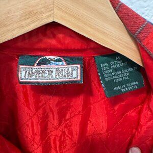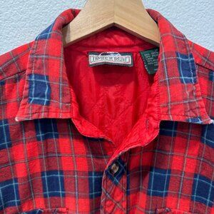 Distressed VTG Timber Run Shirt Mens M Tall Red Tartan Plaid Flannel Quilt Lined