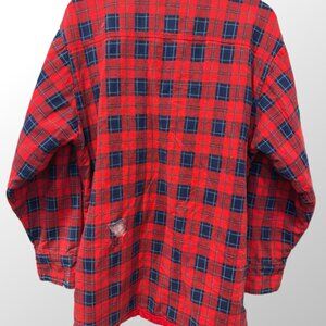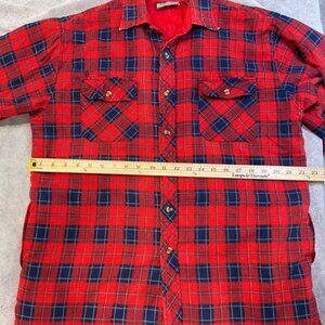 Distressed Vintage Timber Run Shirt Mens M Tall Red Tartan Plaid Flannel Quilt Lined
