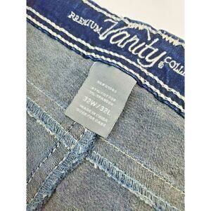 Distressed Vanity Jeans 32 x 32 Premium Embellish Slim Skinny Low Dark Stretch