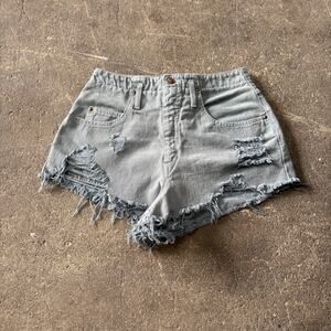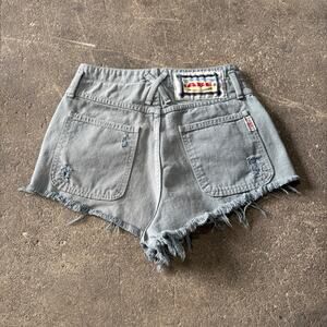 Distressed Vintage Cut Off Denim Jean Shorts Size S 26 Green Tomb Raider 2" ABE