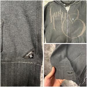 Distressed Vintage Y2K Hurley Big Logo Print Grey/White Stitching Full-zip Hoodie Size Large