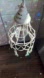 Distressed White Metal Hanging Candle Holder with Glass Crystal Prisms